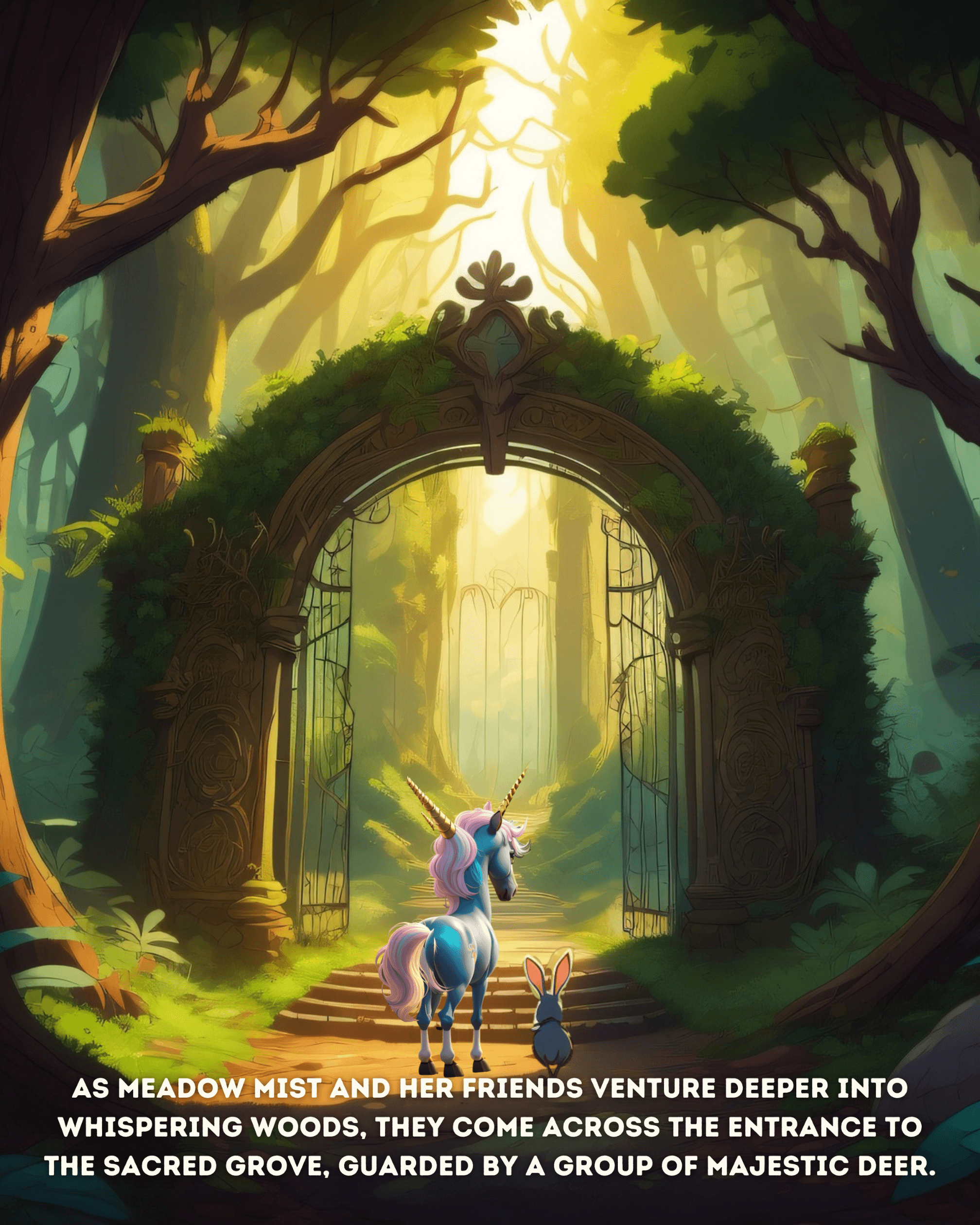 "The Secret of Whispering Woods" is a heartwarming tale about Seraphina, a gentle unicorn who embarks on an enchanting adventure through the mystical Whispering Woods. Along her journey, Seraphina encounters a diverse group of forest creatures, including Ziggy the playful squirrel, Lily the curious rabbit, and Archibald the wise old owl. Initially shy and unsure, Seraphina learns the true value of friendship as she and her newfound companions face various challenges together.