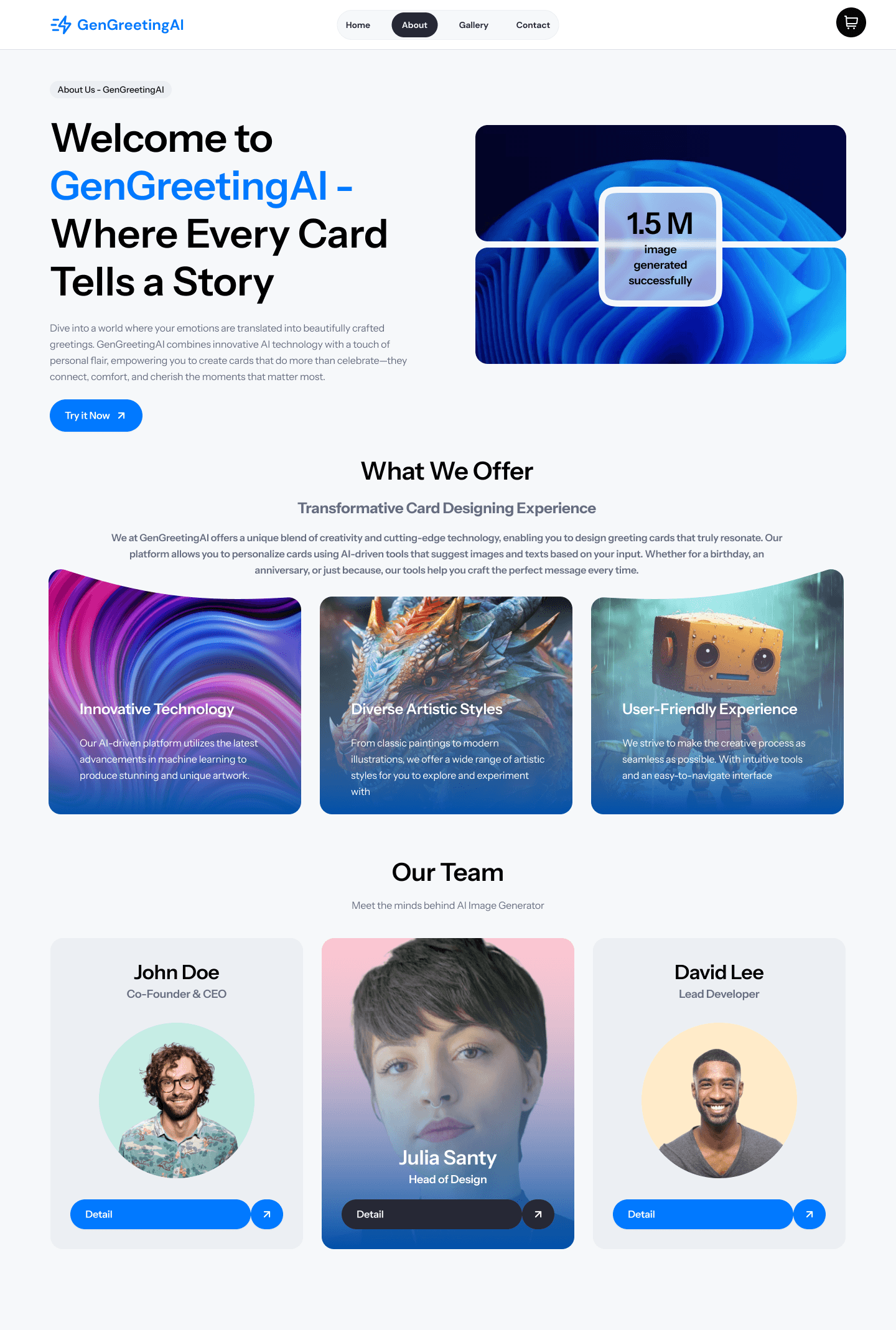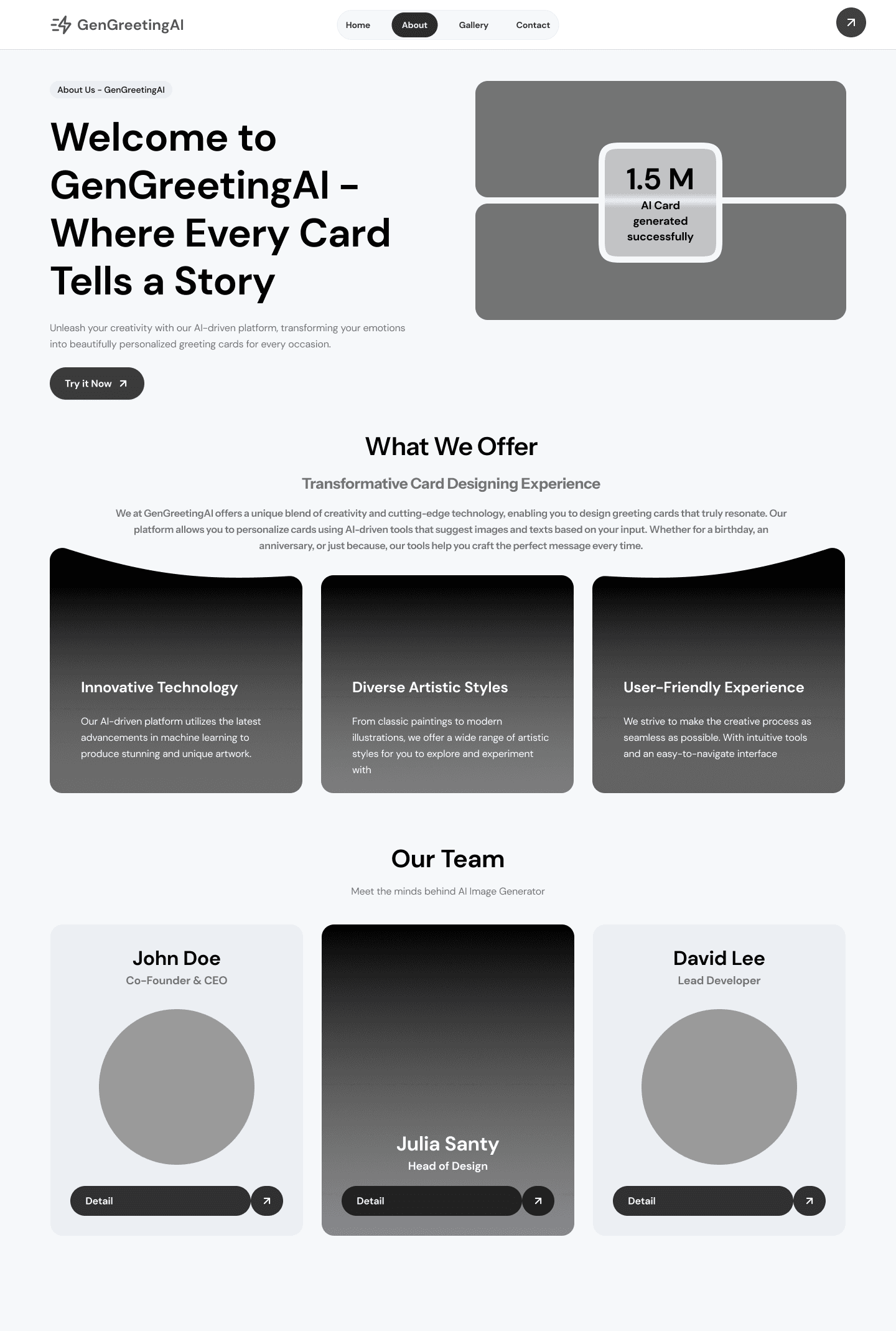 Created web design interface for a platform that effortlessly create personalized greeting cards with AI-generated images and text.